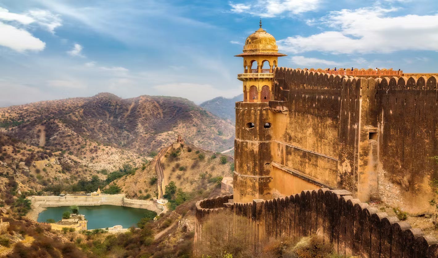 The undulating desert was dry but not entirely desolate, dotted here and there with stoic trees. This was not a terrain of dunes, but of camel-colored dirt, pink rock, and achingly blue sky. Humped cattle ambled through trackside swales. Peacocks sat atop fence posts. The very air seemed to phosphoresce with a hot white brilliance. We arrived in Jaipur as dusk was settling over the ancient city. The train’s cowcatcher forced a troop of monkeys from the tracks, sending them howling into the gloam.